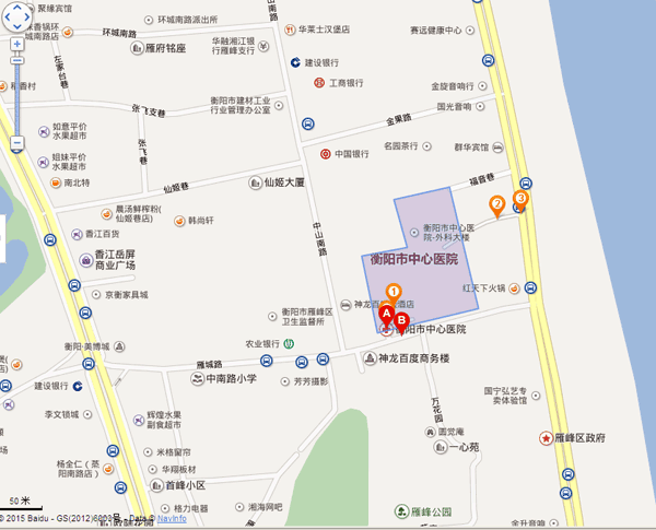 乘車路線 1、乘坐109路116路117路126路127路159路17路1路2路302路K16路K26路同盛6路夜班1路 到 雁峰廣場 下車步行153米 ;2、乘坐112路116路12路139路159路1路2路303路6路支線K16路K39路仁友3路夜班115路夜班1路 到 橋頭花園 下車步行186米 ;3、乘坐112路116路127路12路139路159路17路1路2路302路303路6路支線K16路K26路K39路仁友3路同盛6路夜班115路夜班1路 到 中心醫(yī)院 下車步行224米 ;4、乘坐115路 到 雁峰公園 下車步行247米 ;5、乘坐115路 到 衡陽市中心醫(yī)院 下車步行258米
