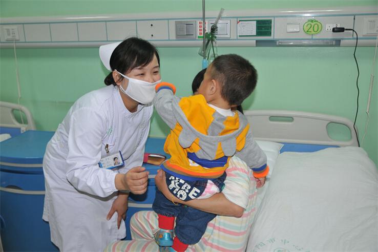 普兒護(hù)士曾偉在病房與孩子“親密接觸”。