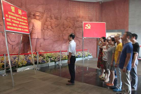 接著,大家相繼參觀了羅榮桓故居、羅榮桓紀念館。在羅榮桓紀念館,看著展出的一幅幅各個時期珍貴的歷史照片,重要的革命歷史文獻,大家了解到了羅榮桓元帥光輝戰(zhàn)斗的一生,深刻地體會到了羅榮桓元帥崇高的愛國主義情懷和為了革命事業(yè)奉獻終生的偉大情操,受到了一次深刻的愛國主義教育。在羅元帥的雕像前,面對鮮紅的黨旗,大家共同舉起右手,又一次重溫入黨誓詞。