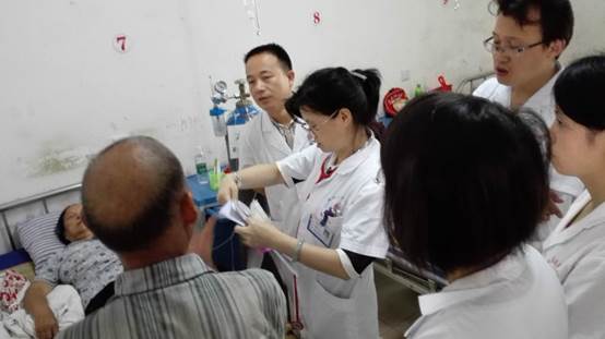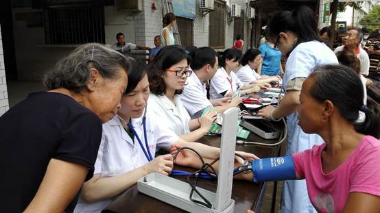 義診活動(dòng)一開始,各位專家熱情地接待群眾,忙著給前來咨詢、看病的群眾測(cè)血壓、做檢查,耐心細(xì)致地解答患者的疑難問題,并有針對(duì)性地進(jìn)行健康宣教、開出健康處方。專家們緊張而有序地忙碌著,當(dāng)看到群眾們那一張張綻開的笑臉,更激發(fā)了大家的工作熱情。盡管炎炎烈日卻絲毫沒有消減大家義診的熱情。同時(shí),覃春蓮主任、李春虹主任、朱曉宇主任等專家同鎮(zhèn)衛(wèi)生院醫(yī)生一起進(jìn)行了查房,對(duì)衛(wèi)生院專業(yè)技術(shù)人員進(jìn)行了相關(guān)指導(dǎo)。