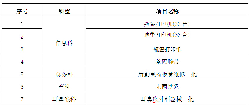 因醫(yī)院發(fā)展的需要,我院擬于近期采購打印機(jī)一批及配套打印紙若干,桌椅板凳維修一批,歡迎具備條件的公司報名參加。