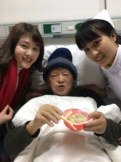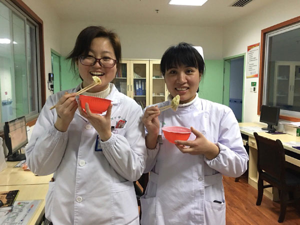 別樣的年味——我的除夕夜 發(fā)布時(shí)間:2018年2月26日 預(yù)覽:10640次 通訊員曾彩云報(bào)道:“喂,你怎么還不回來(lái)啊,村里在外面工作的都回來(lái)幾天了,你怎么還沒放假?你爸說(shuō)要你回來(lái)過(guò)年”。我:“除夕這天是我值班,不能回去過(guò)年了,你們吃好喝好,不要掛念我?!彪娫捘穷^的媽媽沉默了一下:“那你自己多買點(diǎn)好吃的,別虧了自己,一個(gè)人過(guò)年也要吃好。既然要工作,那就好好工作,你爸那邊我去跟他說(shuō)”。 就這樣,我開始了我的除夕夜,往年的今天,都是在家看電視,嗑瓜子,和家人吃團(tuán)圓飯,今年是我進(jìn)醫(yī)院的第一年,也是第一次在醫(yī)院過(guò)除夕,雖然也曾抱怨過(guò)護(hù)理這個(gè)職業(yè)的晝夜顛倒,抱怨它沒有節(jié)假日之分,抱怨它的不被人理解,抱怨它的……但在真正投入到這份工作后,它給我?guī)?lái)的是更多的成長(zhǎng)、快樂和幸福感。比如這個(gè)除夕夜,我就一點(diǎn)都不孤單,反而內(nèi)心充滿了快樂和幸福。“彩云,彩云”,好像聽到有人在叫我,趕忙從治療室出來(lái),哦,是麻護(hù)士長(zhǎng),我:“護(hù)士長(zhǎng),今天不是除夕嗎,您怎么來(lái)了?”護(hù)士長(zhǎng):“我們家今天包了餃子,就想帶給你們也嘗嘗,科室不是還有這么多老人沒回去過(guò)年嗎?我來(lái)看看他們,順便給他們拜個(gè)早年?!痹捖洌o(hù)士長(zhǎng)就忙把餃子拿出來(lái),還備了醬汁和一次性碗筷,爺爺奶奶們看到護(hù)士長(zhǎng)來(lái)看他們,還帶了親手包的餃子,開心和感動(dòng)的說(shuō):“你們真是比我親孫女還好啊,除夕還來(lái)陪我們吃餃子,真是辛苦你們了”。45床劉亞輝奶奶伸出了大拇指,稱贊護(hù)士長(zhǎng)是——“中國(guó)好護(hù)士長(zhǎng)”。1床佘協(xié)金爺爺感動(dòng)的拿糖果往我們口袋里塞,我們說(shuō)不要,謝謝爺爺,爺爺還是堅(jiān)持一邊往我們口袋里塞,一邊說(shuō)著感謝的話……我和馮醫(yī)生吃著餃子,心里更是暖暖的。 我或許錯(cuò)過(guò)了第一時(shí)間與家人團(tuán)聚的機(jī)會(huì),錯(cuò)過(guò)了新春向長(zhǎng)輩的第一聲祝福,錯(cuò)過(guò)了除夕夜的春節(jié)晚會(huì),錯(cuò)過(guò)了手機(jī)上瘋搶的紅包,卻用盡職盡責(zé)的堅(jiān)守,收獲了病人的笑容,收獲了患者家屬的感謝。老干科是我們的小家庭,醫(yī)院是我們的大家庭,雖然除夕不能和家人一起守歲,但取而代之的是一群特殊的家人,感受到的是一種特殊的團(tuán)圓,品嘗的是另一番“年味”。