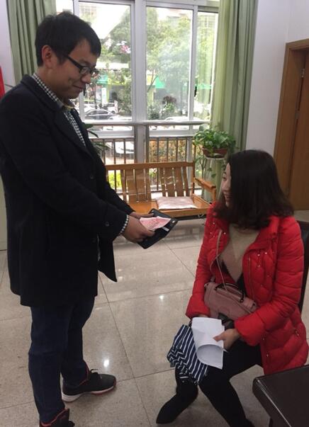 3月7日下午,剛剛經(jīng)過一輪收費高峰,收費員戴崢忽然發(fā)現(xiàn)窗臺上多了一黑色錢夾,他馬上將其交給負(fù)責(zé)人彭海燕。打開一看,嶄新的一百元大鈔,共計數(shù)千元,還有若干張銀行卡等??紤]到病人肯定十分著急,彭海燕馬上帶領(lǐng)戴崢去監(jiān)控室調(diào)視頻,聯(lián)合錢包中的身份證信息,最終通過聯(lián)系就診醫(yī)生,在B超等候區(qū)找到了這位還不知自己丟失了錢包的失主。將錢包交還的那一刻,失主激動得連聲說“謝謝”,周圍的病人也都伸出大拇指點贊。