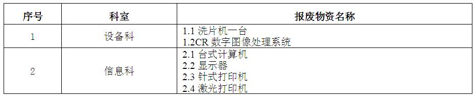 我院擬于近期采用公開(kāi)招標(biāo)方式處理一批廢舊物資,歡迎具備條件并有意向的單位報(bào)名參加。