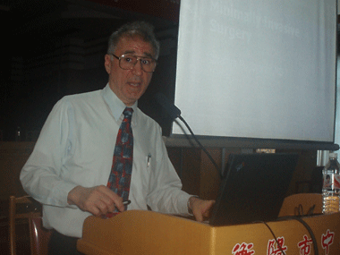 美國(guó)兩院士來(lái)我院講學(xué)(圖) 發(fā)布時(shí)間:2006年5月25日 預(yù)覽:13437次 5月24日,兩位美國(guó)醫(yī)學(xué)院士應(yīng)邀來(lái)我院院開(kāi)展學(xué)術(shù)訪問(wèn)活動(dòng),全市200多醫(yī)務(wù)人員認(rèn)真聆聽(tīng)了國(guó)際權(quán)威專家的學(xué)術(shù)講座。 美國(guó)東部微創(chuàng)外科協(xié)會(huì)主席、外科院士、腹腔鏡手術(shù)專家Ibrahim教授和美國(guó)外科院士、血管外科專家Allen Yu教授講授這次均是首次來(lái)到湖南,他們講座的主題分別為主題為《美國(guó)微創(chuàng)外科技術(shù)新進(jìn)展》和《頸內(nèi)動(dòng)脈內(nèi)膜切除術(shù)》,Ibrahim教授說(shuō),自1989年世界首臺(tái)腹腔鏡問(wèn)世后,微創(chuàng)外科已被應(yīng)用于醫(yī)學(xué)各個(gè)領(lǐng)域,代表醫(yī)學(xué)發(fā)展方向。他認(rèn)為從事微創(chuàng)外科的醫(yī)師要轉(zhuǎn)變觀念,應(yīng)具備耐心、細(xì)心等素質(zhì),要多多練習(xí)。英語(yǔ)講學(xué),視頻手術(shù)演示,專家嚴(yán)謹(jǐn)?shù)膶W(xué)術(shù)作風(fēng)和扎實(shí)的技術(shù)功底令聽(tīng)課者受益匪淺。講座后,兩位院士還在段曉明院長(zhǎng)的陪同下興致勃勃參觀了我院,對(duì)這所百年老院蘊(yùn)含的生機(jī)與活力大為欣賞。