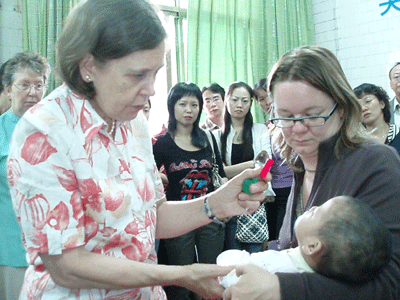 英國(guó)皇家醫(yī)學(xué)會(huì)專家來(lái)我院講學(xué)(圖) 發(fā)布時(shí)間:2006年9月14日 預(yù)覽:14990次 9月12日,應(yīng)我院邀請(qǐng),英國(guó)皇家兒科醫(yī)學(xué)院榮授院士、兒童神經(jīng)內(nèi)科顧問(wèn)醫(yī)生、嬰幼兒發(fā)展研究協(xié)會(huì)會(huì)長(zhǎng)丹尼絲·查理斯(Denis Challis)教授和英國(guó)兒科顧問(wèn)醫(yī)生帕特麗西婭·湯姆遜(patricia Tomsou)一行來(lái)我院講學(xué),來(lái)自全市各級(jí)醫(yī)院的150名兒科專業(yè)醫(yī)務(wù)人員參加了此次學(xué)術(shù)活動(dòng)。 英國(guó)專家通過(guò)授課和現(xiàn)場(chǎng)演示的形式,系統(tǒng)介紹了腦癱、孤獨(dú)癥等兒童神經(jīng)系統(tǒng)發(fā)育障礙的評(píng)估、預(yù)防對(duì)策與治療新進(jìn)展。專家們指出,由于環(huán)境、生物和疾病等因素的影響,兒童神經(jīng)系統(tǒng)發(fā)育障礙的發(fā)病率在國(guó)際上正呈上升趨勢(shì)。專家們列舉了“十條診病依據(jù)”,動(dòng)作是否遲緩?視物是否困難?聽(tīng)覺(jué)是否存在問(wèn)題?能否明白大人講話意思?四肢活動(dòng)是否受阻?有沒(méi)有癲癇?是否有模仿能力?能否講話?2歲時(shí)可否說(shuō)出至少一個(gè)物體?有沒(méi)有其他智力落伍跡象?專家們特別強(qiáng)調(diào)在出生前4個(gè)月是預(yù)防腦癱等疾病的關(guān)鍵時(shí)期,早期干預(yù)對(duì)達(dá)到患兒最大潛能非常重要。專家呼吁全社會(huì)要高度關(guān)注心智方面有缺陷的兒童,兒科醫(yī)師要在以家庭為中心的早期干預(yù)服務(wù)中充當(dāng)重要角色,要通過(guò)進(jìn)步的專業(yè)知識(shí)以技巧,提高家長(zhǎng)對(duì)嬰兒期行為的理解以及影響孩子行為的能力。(鄒建軍)
