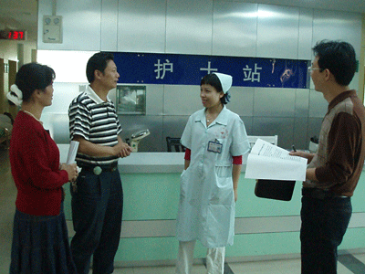 市衛(wèi)生局文明創(chuàng)建督查組在我院消化內(nèi)科督查的情形