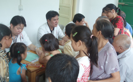 我院組織支援新農(nóng)村建設(shè)醫(yī)療隊(duì)下鄉(xiāng)義診 發(fā)布時(shí)間:2007年8月17日 預(yù)覽:4494次 8月13日,我院組織“支援新農(nóng)村建設(shè)醫(yī)療隊(duì)”專赴衡山縣店門鎮(zhèn)白泥村開展義診活動(dòng),醫(yī)院院長(zhǎng)申錦林教授以及祝平照、劉敬東、尹忠文等專家認(rèn)真為當(dāng)?shù)卮迕駟?wèn)疾查體,并免費(fèi)發(fā)放了價(jià)值數(shù)千元的藥品。今年以來(lái),我院已深入全市20多個(gè)鄉(xiāng)鎮(zhèn)舉辦了義診、捐贈(zèng)藥品、傳授健康實(shí)用技術(shù)等活動(dòng),受惠農(nóng)民6000多人次。圖為專家們?cè)跒榇迕衩赓M(fèi)看病。 (院辦:鄒建軍)