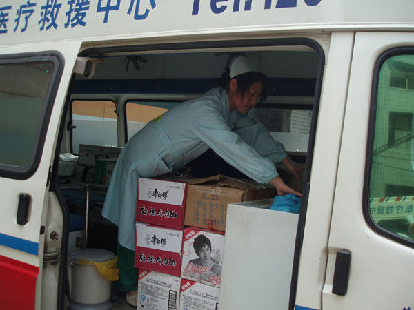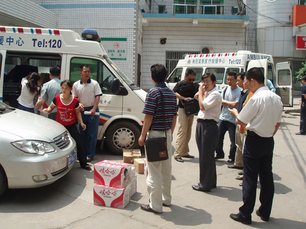 5月13日下午,市中心醫(yī)院憑著多年積累的緊急救援經(jīng)驗(yàn)和職業(yè)敏感,在第一時(shí)間開始啟動《重大自然災(zāi)害醫(yī)療救援應(yīng)急預(yù)案》,成立了專門組織機(jī)構(gòu),配備了相關(guān)醫(yī)務(wù)人員和物資,設(shè)計(jì)了具體工作流程。5月14日上午8時(shí),醫(yī)院院長申錦林在接到上級指令后,當(dāng)即提出“把保護(hù)災(zāi)區(qū)人民生命安全放在第一位”,立即通知相關(guān)人員進(jìn)行集結(jié)。半個(gè)小時(shí)后,6名年輕力壯的司機(jī),3臺配置呼吸機(jī)、監(jiān)護(hù)儀、除顫儀等一流搶救設(shè)施的救護(hù)車以及相關(guān)急藥品和食品迅速組織到位。11時(shí)許,在劉小平副院長的帶領(lǐng)下,三支救護(hù)隊(duì)按照要求從醫(yī)院整裝出發(fā),下午兩點(diǎn)抵達(dá)省衛(wèi)生廳與兄弟醫(yī)院匯合,隨即趕赴災(zāi)區(qū)。