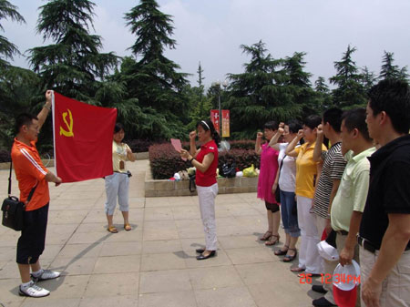 黨員歡聚韶山 發(fā)布時間:2008年6月28日 預覽:10343次 黨員活動 中國共產(chǎn)黨誕辰87周年前夕,醫(yī)院黨委于6月26日組織8名新黨員和部分優(yōu)秀黨員赴韶山參觀學習,并在毛澤東銅像廣場莊嚴宣誓。圖為黨員宣誓和參觀學習照片。 院辦:冷曉君